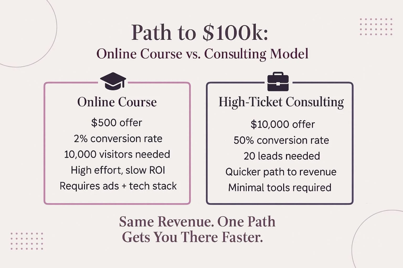 If you're still working toward your first or next six figures, courses and digital products are rarely the most efficient path. They can come later. But in the early stages, you need profit, margin, and fast feedback, not a 12-month funnel build.